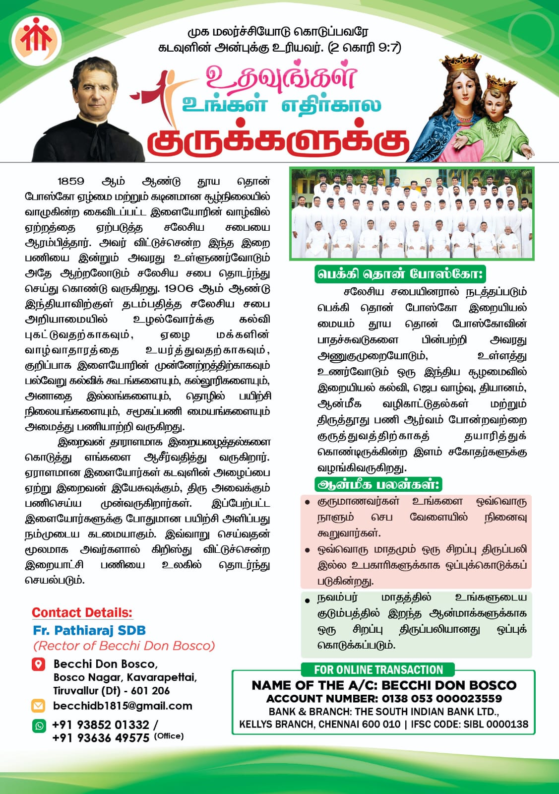 Don Bosco Polytechnic College celebrated its 15th anniversary with the Alumni Meet 2025 on October 5, bringing together approximately 300 alumni from all batches for a vibrant day. The event was graced by key guests, including HR Mr. Santhosh from BONTAZ Company and Fr. Anandaraj SDB, Administrator and Assistant Parish Priest of St. Francis Xavier’s Church, Shrine of Mary Help of Christians, Dominic Savio Matriculation School, Broadway.